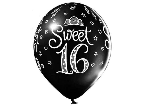 Baloni "Sweet 16" melni, Belbal, 29cm